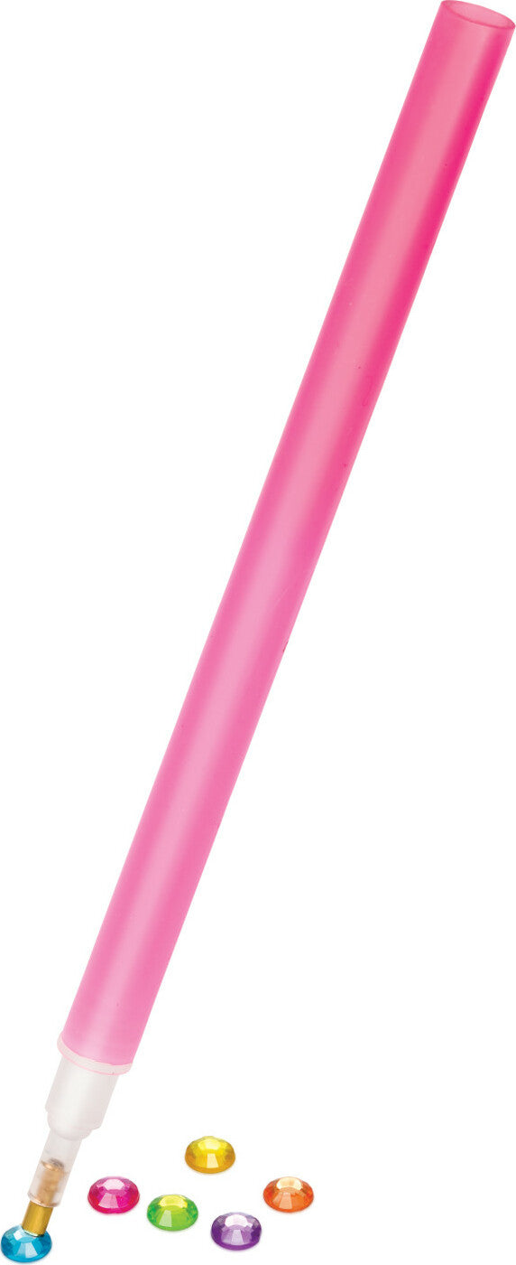 No glue needed! Just peel the clear cover off the adhesive then use the stylus to pick and place the colorful gems.