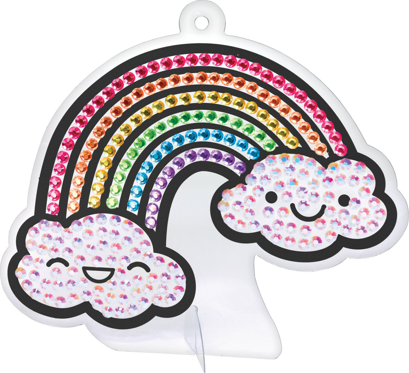 Enjoy two diamond painting activities in one kit: 12 holographic stickers include printed dots for guided gem placement while, 2 sun catchers offer an open-ended design experience.