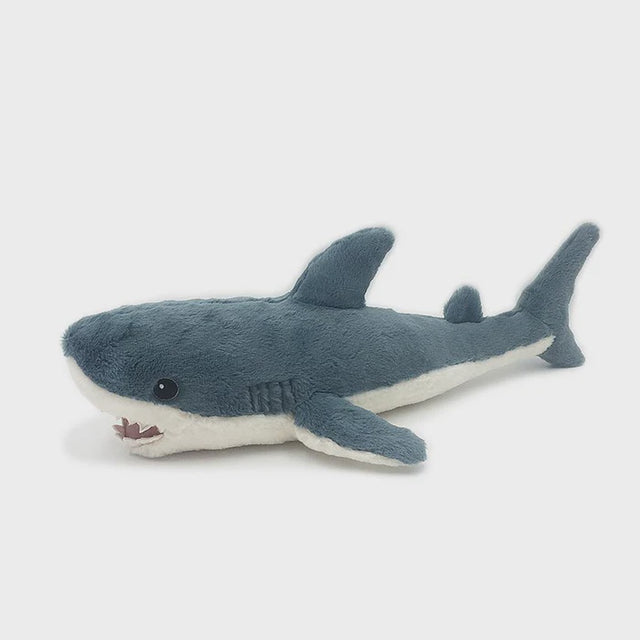 This beautifully crafted , not so scary, shark is the perfect cuddle buddy. His slate blue soft fur make him the perfect snuggle buddy!