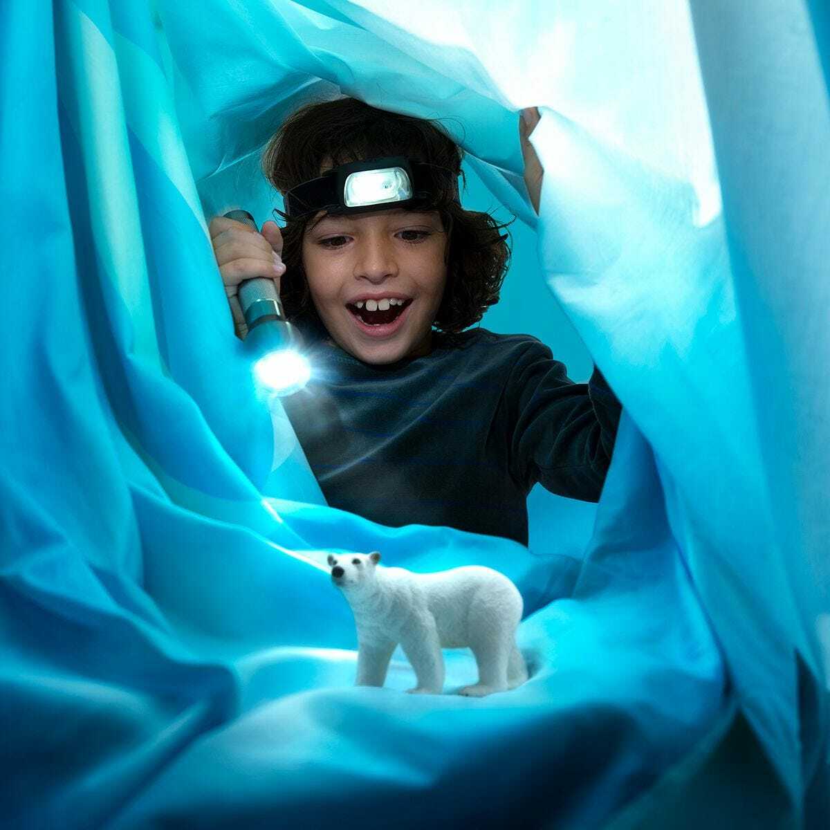 The polar bear's habitat is the Arctic. In winter, the temperature there can drop to -50° Celsius. Although its fur coat appears white, its hair is transparent and hollow on the inside. The air inside these hairs is warmed by the sun, so that polar bears do not freeze even at icy temperatures.