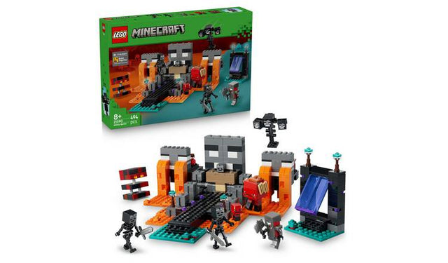 Transport Minecraft® players to endless pretend play possibilities with the Wither Battle (21590) building toy for boys and girls 8 years old and up. Kids join the Crimson Warrior as he takes on 2 skeletons and other mob figures in an explosive adventure in the warped forest biome. Packed with action and authentic Minecraft details, this set includes gaming characters like a Crimson Warrior, 2 wither skeletons, a strider, a magma cube and a buildable wither boss. A Nether portal and a shrine with a crafting table and a hidden wither that kids can summon with an explosion feature bring the game to life. Kids enjoy imaginative, hands-on play as they battle foes, ride the strider and engage in epic adventures – making it a great gamer gift for Minecraft players, LEGO builders and fans of video game toys. And friends and family can team up with Build Together mode in the LEGO Builder app, where everyone has fun building part of the set using their own devices. Set contains 494 pieces.